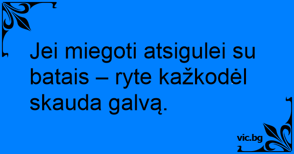 Pas gydytoją ateina žmogelis ir skundžiasi: - Daktare, turiu alergiją odai – kai ryte pabundu su batais, labai galvą skauda.