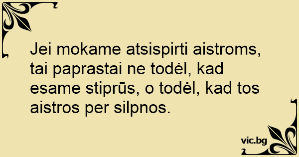 Jei mokame atsispirti aistroms, tai paprastai ne todėl, kad esame stiprūs, o todėl, kad tos aistros per silpnos.