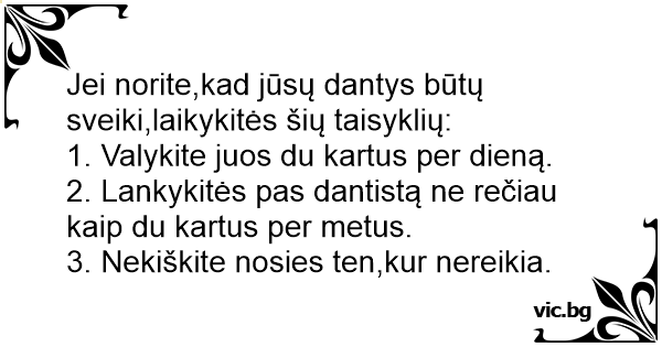 Jei norite,kad jūsų dantys būtų sveiki,laikykitės šių taisyklių:
