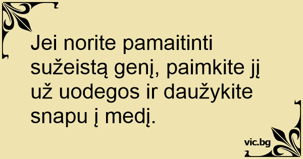 Jei norite pamaitinti sužeistą genį, paimkite jį už uodegos ir daužykite snapu į medį.