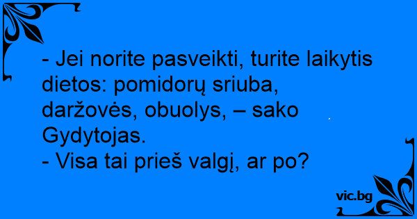 - Jei norite pasveikti, turite laikytis dietos: pomidorų sriuba, daržovės, obuolys, – sako