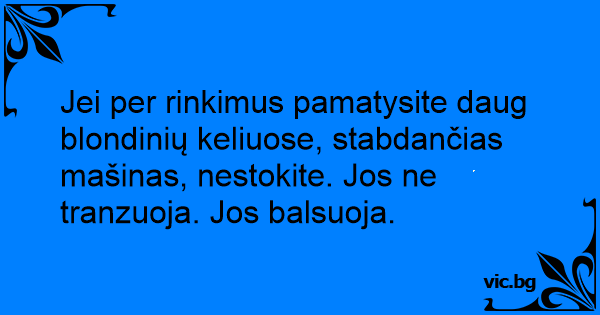Jei per rinkimus pamatysite daug blondinių keliuose, stabdančias mašinas, nestokite. Jos ne tranzuoja. Jos balsuoja.