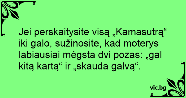 Jei perskaitysite visą „Kamasutrą“ iki galo, sužinosite, kad moterys labiausiai mėgsta dvi pozas: „gal kitą kartą“ ir „skauda galvą“.
