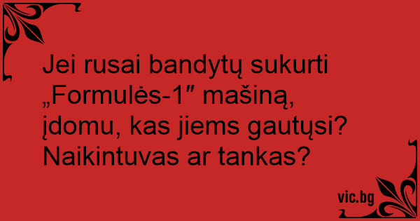 Jei rusai bandytų sukurti „Formulės-1″ mašiną, įdomu, kas jiems gautųsi? Naikintuvas ar tankas?