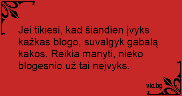 Jei tikiesi, kad šiandien įvyks kažkas blogo, suvalgyk gabalą kakos. Reikia manyti, nieko blogesnio už tai neįvyks.