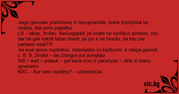 Jeigu gaunate pranešimą, ir nesuprantate, kokie trumpiniai ką reiškia, štai jums pagalba: