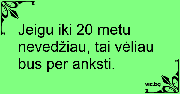 Jeigu iki 20 metu nevedžiau, tai vėliau bus per anksti.