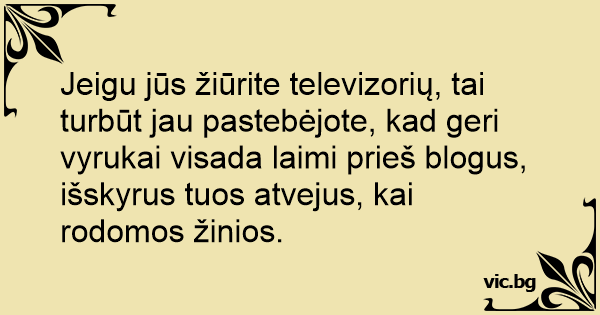Jeigu jūs žiūrite televizorių, tai turbūt jau pastebėjote, kad geri vyrukai visada laimi prieš blogus, išskyrus tuos atvejus, kai rodomos žinios.