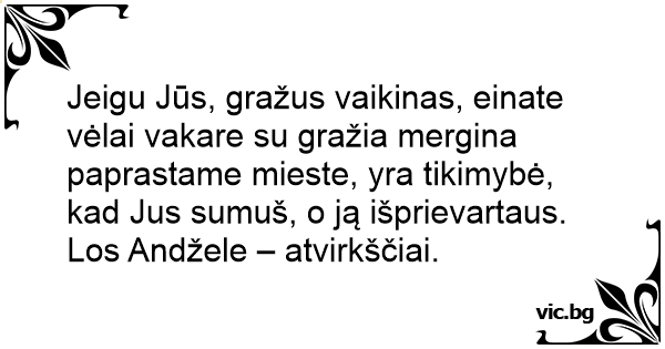 Jeigu Jūs, gražus vaikinas, einate vėlai vakare su gražia mergina paprastame mieste, yra tikimybė, kad Jus sumuš, o ją išprievartaus. Los Andžele – atvirkščiai.