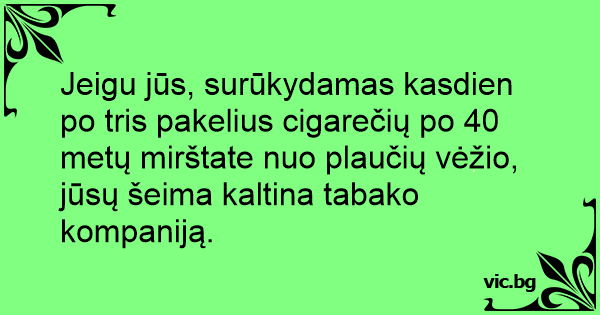 Jeigu jūs, surūkydamas kasdien po tris pakelius cigarečių po 40 metų mirštate nuo plaučių vėžio, jūsų šeima kaltina tabako kompaniją.