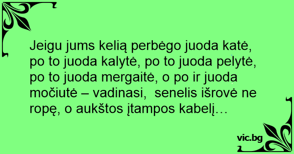 Jeigu jums kelią perbėgo juoda katė, po to juoda kalytė, po to juoda pelytė, po to juoda mergaitė, o po ir juoda močiutė – vadinasi, senelis išrovė ne ropę, o aukštos įtampos kabelį…