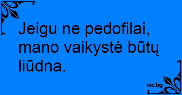 Jeigu ne pedofilai, mano vaikystė būtų liūdna.