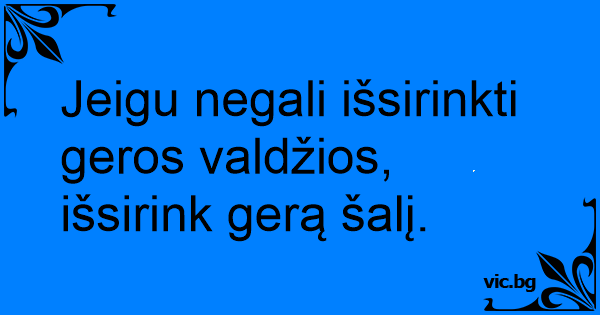 Jeigu negali išsirinkti geros valdžios, išsirink gerą šalį.