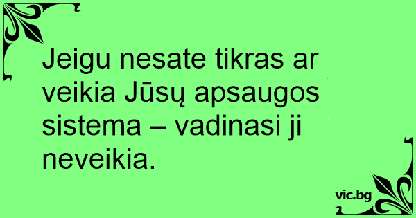 Jeigu nesate tikras ar veikia Jūsų apsaugos sistema – vadinasi ji neveikia.