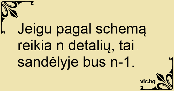 Jeigu pagal schemą reikia n detalių, tai sandėlyje bus n-1.