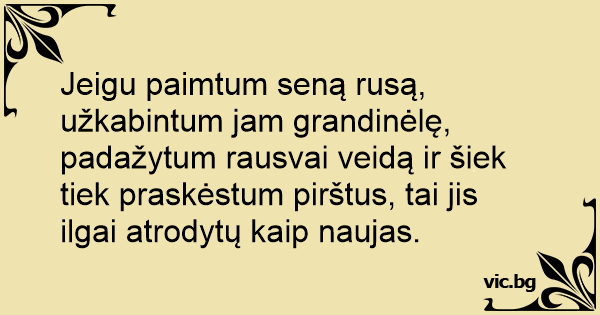 Jeigu paimtum seną rusą, užkabintum jam grandinėlę, padažytum rausvai veidą ir šiek tiek praskėstum pirštus, tai jis ilgai atrodytų kaip naujas.