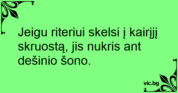 Jeigu riteriui skelsi į kairįjį skruostą, jis nukris ant dešinio šono.
