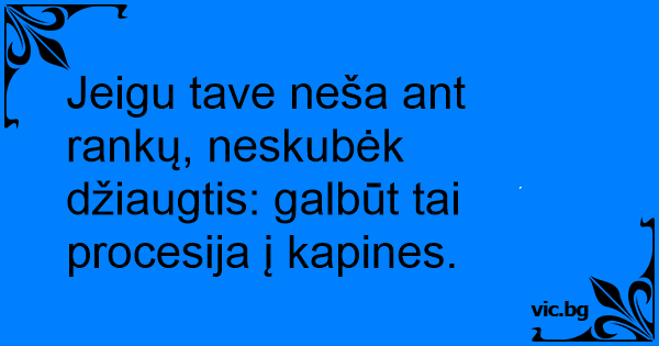 Jeigu tave neša ant rankų, neskubėk džiaugtis: galbūt tai procesija į kapines.