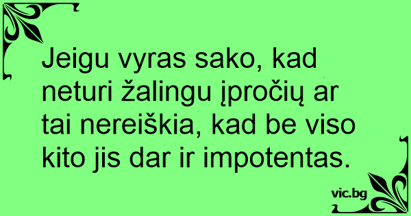 Jeigu vyras sako, kad neturi žalingu įpročių ar tai nereiškia, kad be viso kito jis dar ir impotentas.