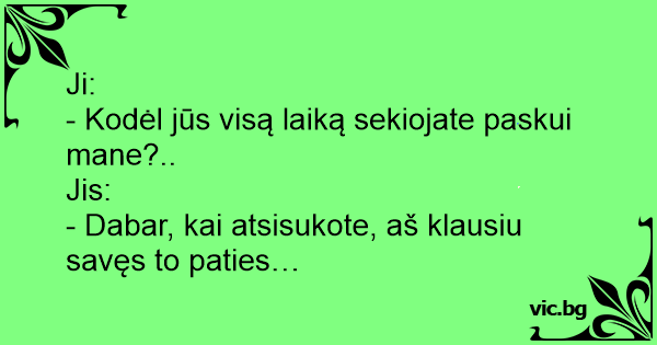 - Kodėl jūs visą laiką sekiojate paskui mane?..