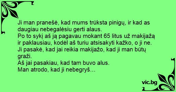 Ji man pranešė, kad mums trūksta pinigų, ir kad as daugiau nebegalėsiu gerti alaus.