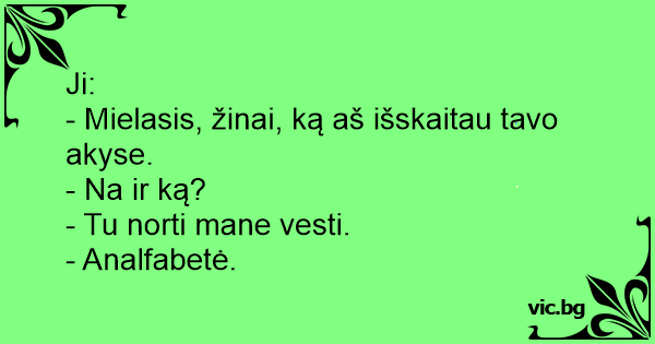 - Mielasis, žinai, ką aš išskaitau tavo akyse.