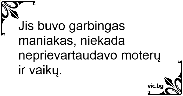 Jis buvo garbingas maniakas, niekada neprievartaudavo moterų ir vaikų.