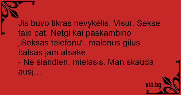 Jis buvo tikras nevykėlis. Visur. Sekse taip pat. Netgi kai paskambino „Seksas telefonu“, malonus gilus balsas jam atsakė: