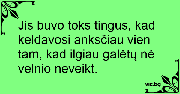 Jis buvo toks tingus, kad keldavosi anksčiau vien tam, kad ilgiau galėtų nė velnio neveikt.
