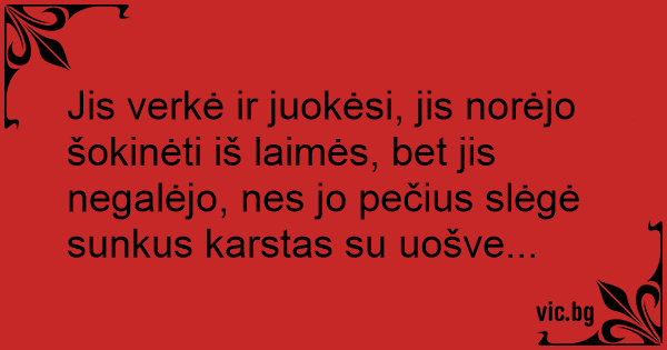 Jis verkė ir juokėsi, jis norėjo šokinėti iš laimės, bet jis negalėjo, nes jo pečius slėgė sunkus karstas su uošve...