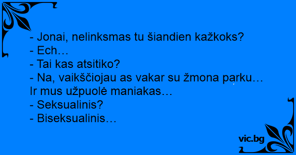 - Na, vaikščiojau as vakar su žmona parku… Ir mus užpuolė maniakas…