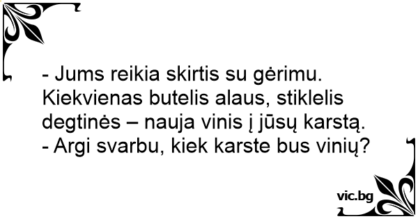- Jums reikia skirtis su gėrimu. Kiekvienas butelis alaus, stiklelis degtinės – nauja vinis į jūsų karstą.