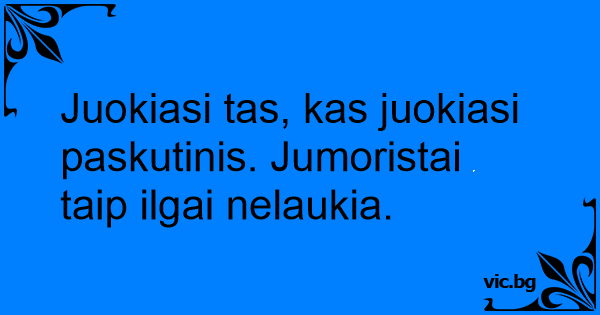 Juokiasi tas, kas juokiasi paskutinis. Jumoristai taip ilgai nelaukia.
