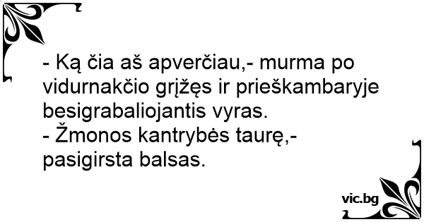 - Žmonos kantrybės taurę,-pasigirsta balsas.