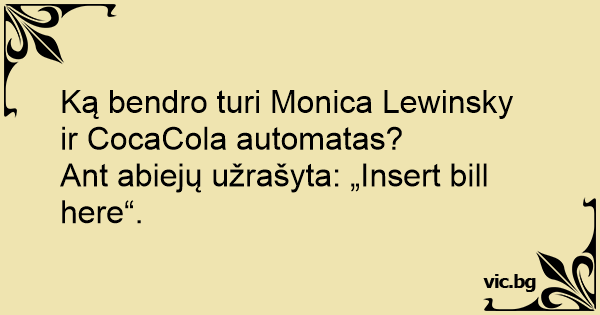 Ką bendro turi Monica Lewinsky ir CocaCola automatas?