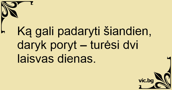 Ką gali padaryti šiandien, daryk poryt – turėsi dvi laisvas dienas.