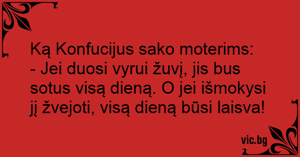 - Jei duosi vyrui žuvį, jis bus sotus visą dieną. O jei išmokysi jį žvejoti, visą dieną būsi laisva!