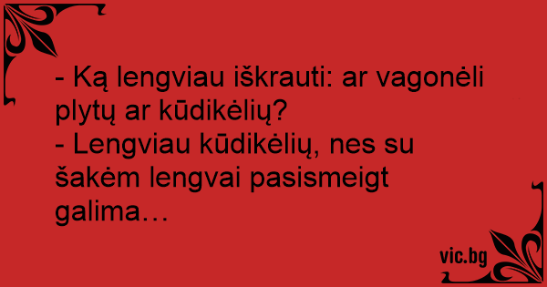 - Ką lengviau iškrauti: ar vagonėli plytų ar kūdikėlių?