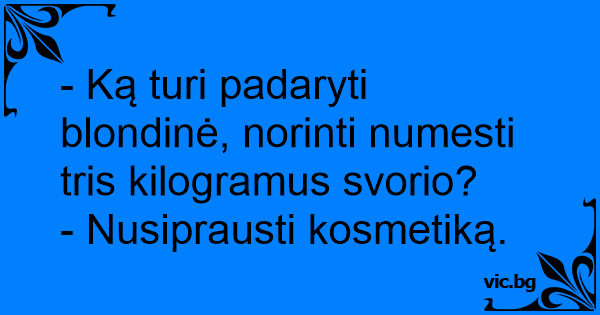 - Ką turi padaryti blondinė, norinti numesti tris kilogramus svorio?