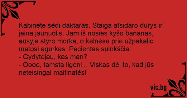 - Oooo, tamsta ligoni... Viskas dėl to, kad jūs neteisingai maitinatės!