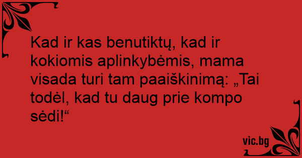 Kad ir kas benutiktų, kad ir kokiomis aplinkybėmis, mama visada turi tam paaiškinimą: „Tai todėl, kad tu daug prie kompo sėdi!“