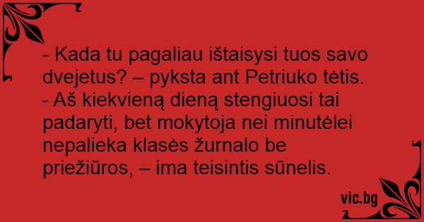 - Kada tu pagaliau ištaisysi tuos savo dvejetus? – pyksta ant Petriuko tėtis.