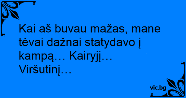 Kai aš buvau mažas, mane tėvai dažnai statydavo į kampą… Kairyjį…