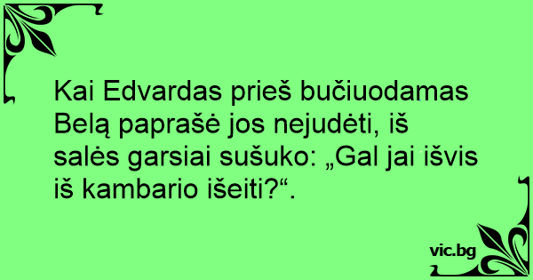 Kai Edvardas prieš bučiuodamas Belą paprašė jos nejudėti, iš salės garsiai sušuko: „Gal jai išvis iš kambario išeiti?“.