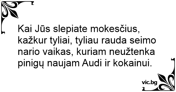 Kai Jūs slepiate mokesčius, kažkur tyliai, tyliau rauda seimo nario vaikas, kuriam neužtenka pinigų naujam Audi ir kokainui.