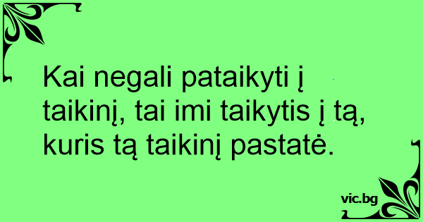 Kai negali pataikyti į taikinį, tai imi taikytis į tą, kuris tą taikinį pastatė.