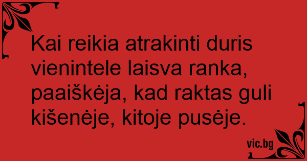 Kai reikia atrakinti duris vienintele laisva ranka, paaiškėja, kad raktas guli kišenėje, kitoje pusėje.