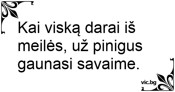 Kai viską darai iš meilės, už pinigus gaunasi savaime.
