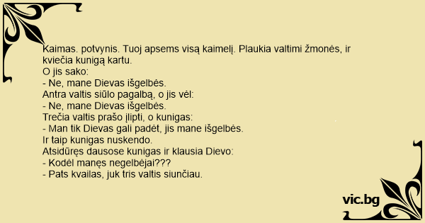 - Man tik Dievas gali padėt, jis mane išgelbės.