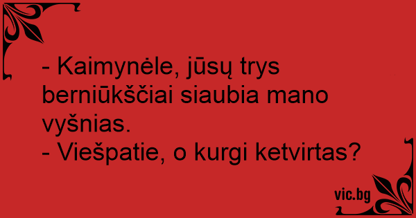 - Kaimynėle, jūsų trys berniūkščiai siaubia mano vyšnias.